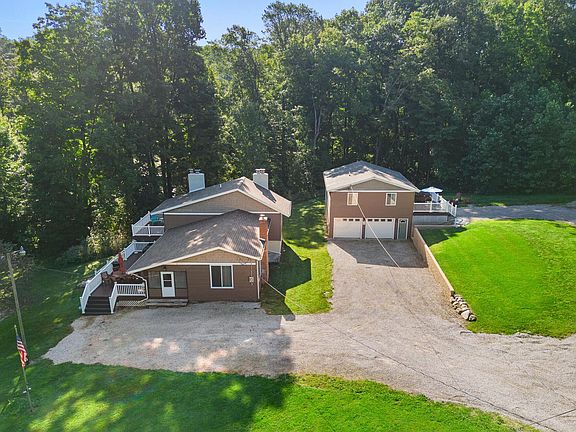 Gorgeous Country Haven' in the heart of Clear Fork Valley! Two completely updated homes on 9.5 secluded acres! Main house: 3 beds, each with a beautiful stone fireplace! Open concept main floor plan is perfect for entertaining! Cozy sunken living room with pellet stove to help keep utility costs low! Each of the 3 levels has a bathroom! Bi-level composite deck with 7 person hot tub! Adorable screened in porch area! Across the spacious driveway is a two car garage with auxillary dwelling above it! 2 bedrooms/1 bath, composite deck complete with hot tub! Large utility area at the back of the garage for storage! Outdoor space is a nature lovers dream complete with 2 firepits, trails, & a stream! Would make a great income property/AirBnB or forever home! Rent out 1 house & live in the other!