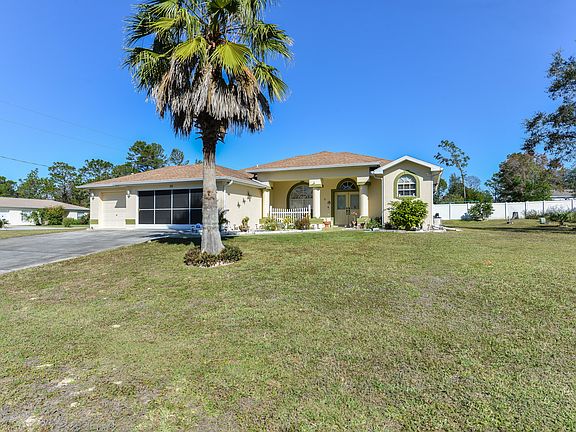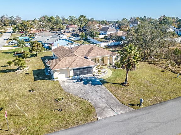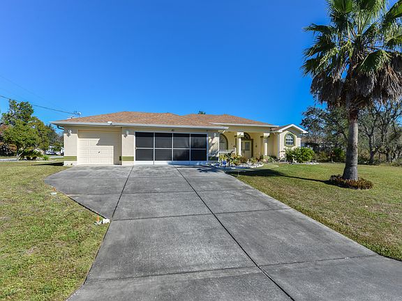What a beauty! Residing in a quiet neighborhood and stretching across an oversized corner lot. Adorable curb appeal with large landscaping beds, a 3-car garage, and a cozy front porch area. Volume trey ceilings and a flowing floor plan really bring out the beauty in this home. Nice open kitchen includes a breakfast bar and recessed lighting. Family room nestled in the back of the home is the perfect spot to relax and unwind. Bright and beautiful Master bedroom has two closets along with access access to the lanai. Master bath with dual sinks, a walk-in shower, and tub for ultimate relaxation. Great covered area on lanai to stay out of the sun. Or, if you prefer fun in the sun make a splash in your in-ground pool! This home is a must see!