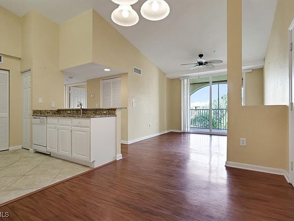 Must see this beautiful 2-bedroom, 1 bath condo on the 3rd floor with Vaulted Ceilings overlooking the lake. The Residence Condominium's is Fort Myers best kept secret located within minutes to I-75 and the Midpoint Bridge, conveniently located behind the Edison Mall, offering a shopping paradise to all its residents. Only a short drive to the heart of all Downtown Fort Myers has to offer. The Residence community provides a Salt water heated pool with a sun deck overlooking a lake with two illuminated water features. As a resident of this community, you could workout daily in the Fitness Center, play billiards in the Clubhouse or take a stroll on our beautifully landscaped walk paths around the grounds and lake! This beautiful 3rd floor 2 bed 1 bath condo has tile in the wet areas with laminate wood in the bedrooms, granite countertops in kitchen and bathroom, full size washer and dryer in separate laundry room, very spacious master bedroom and offers access to bathroom from bedroom and hallway, bathroom has a nice relaxing garden tub. Enter the guest bedroom through double doors. Come see this well-kept community today with water and sewer included in quarterly dues. If you are looking for your primary residence, a 2nd home or an investment come see why The Residence Condominium is a must see in your search.
