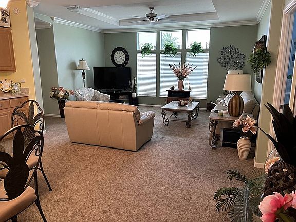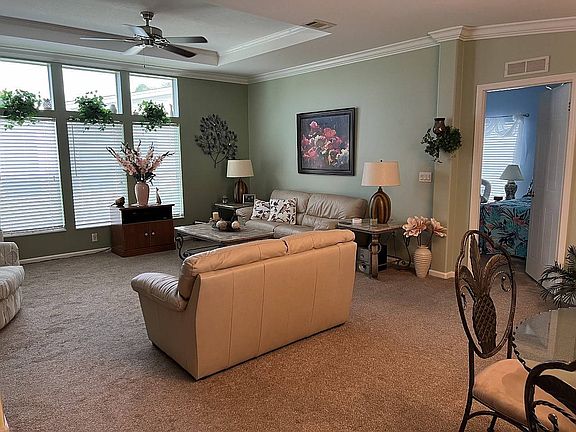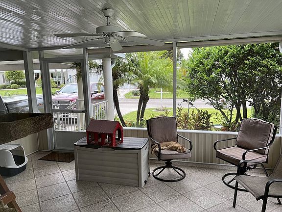 Nice Split Floor Plan, 2 BR 2 BA. 1316 sg ft. Fully Furnished. New Carpet in living room and dining room. Large master Bedroom is 11.5 X 15.5 With Double Sink and Walk In Shower In Master Bath. Second Bedroom has rear access to backyard. Plenty of cabinets and counter space in kitchen. 17 X 12 Screened Lanai with roller blinds. double covered driveway. Newer roof , newer AC in 2016. This is a home you must see.