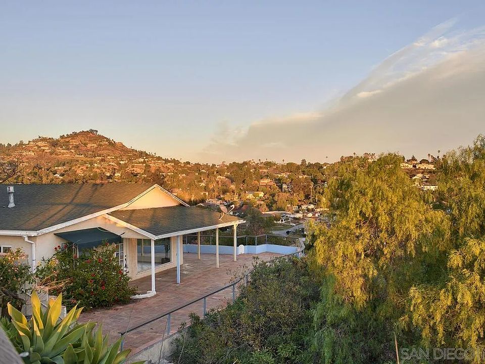 Panoramic view of the southeast. Tucked at the end of a cul-de-sac in one of La Mesa’s greatest pocket neighborhoods. 2 master suites on opposite sides of the home. Large open living, dining and kitchen space with expansive windows showcasing a south easterly view from many angles. Wrap-around patio makes for great indoor and outdoor entertaining. Large storage sheds and covered work area. Room to garden! Plenty of parking and gated access.