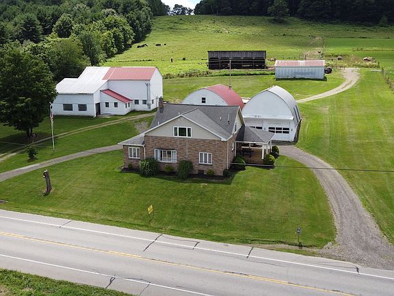 This 4 bedroom-3 bath farmhouse, in-law suite and outbuildings are set up and waiting for you and your animals. The home has countless updates, and the land is a nice mix of pasture, hay production and recreation. Entering the home from the rear covered porch, you are greeted by a locker-style coat area and the fabulous custom kitchen. The kitchen is loaded with cabinet and countertop space including a considerable pantry. The large 6-burner convection range, quartz countertops and custom farmhouse table add to the beauty. Adjoining is a nice living area with natural lighting, a neighboring playroom or sitting area, a bedroom and a bathroom. Rounding out the level is an exceptional laundry room with a built-in office or craft area. Upstairs, the star of the show is the beautiful main suite, including his and hers cedar-lined walk-in closets and exceptional views. The main bath is incredibly spacious and has both a jet tub and custom tile shower with a rain head and multiple body sprays. The second level also has 2 additional bedrooms with closet space and a shared bathroom. Additional interior updates include electrical, many new windows, solid hardwood doors and hardwood flooring. Above the large 5-bay detached garage is a new in-law suite or potential apartment for supplemental income. The suite features an open design and is handicap accessible from the rear covered deck. No expense was spared with radiant in-floor heat, custom tile bathroom, granite countertops, hardwood floors and plenty of closet space. Outside, a recently installed pool and concrete patio is the perfect location to enjoy those warm summer nights. The large bank barn has existing stalls and a hay loft. The pole building is perfect for equipment and tool storage. The property is well suited for rotational grazing with hi-t fencing including several watering locations. For the gardener, the raised garden beds and abundant fruit trees add to the appeal. The remaining property is a nice mix of hay fields and a section of hardwoods that are predominately maple. The area is known to be excellent hunting including the adjoining PA State Game Lands #306. All seller-owned oil, gas and mineral rights will convey to the buyer subject to a current lease, including rights to free domestic gas. If this fantastic home and farm sounds appealing, reach out to the listing agent for more details or to schedule your personal tour of this amazing farm!