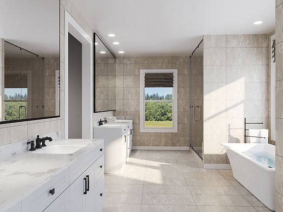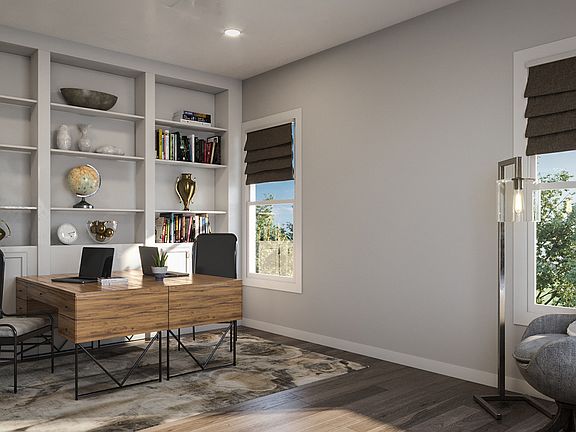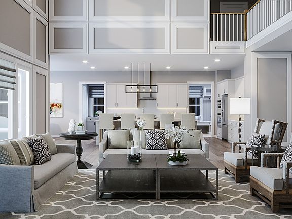 Expansive family living. The Palisade's inviting foyer with impressive tray ceiling opens onto the formal dining room and soaring two-story great room beyond. The well-appointed gourmet kitchen features a large center island with breakfast bar, ample counter and cabinet space, sizable walk-in pantry, and bright casual dining area. The spacious primary bedroom suite is highlighted by an elegant coffered ceiling, dual walk-in closets, and deluxe primary bath with dual vanities, free-standing tub, luxe glass-enclosed shower with seat, dressing areas, linen closet, and private water closet. Secondary bedrooms each feature walk-in closets with private full baths. Additional highlights include a desirable guest bedroom with closet and private full bath adjacent to the foyer, versatile office off the great room, separate family foyer and powder room off the garage, centrally located second floor laundry, and plenty of additional storage throughout.