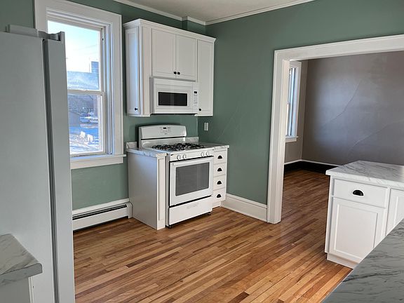 Final touches have been made to this historic renovation of a 1922 brick building upper level apartment. Heat, city water/sewer, parking and garbage included. First and last month rent due at signing. Credit report required. Renovation included upgraded wiring & plumbing; refinished maple flooring; open concept from kitchen to dining; new appliances; new cabinetry. Tall ceilings and large windows and open concept create a light-filled roomy apartment. City water/sewer; heat, garbage and off-street parking included. Renter is responsible for electricity and internet. This is one of four apartments with large spacious hallways. Main floor will be renovated next year into leased retail space. Pet deposit of $250.