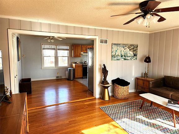 Don't miss this great home in the heart of Crystal City, close to schools and the parks. Traditional Hardwood flooring throughout. Large living room opens to the kitchen/dining area and 2 spacious bedrooms and a full bath on the main level. Plenty of space to finish off in the basement that offers a Family room area, laundry and storage. Enjoy those summer evenings on your covered patio or wood deck while you BBQ in the fenced in private yard. One car detached garage with alley entrance.