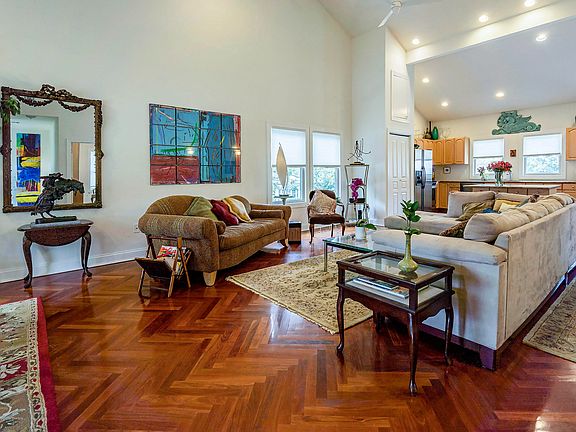 - RoomLivingRoomFeatures: Floor - Wood, Ceilings - Beamed