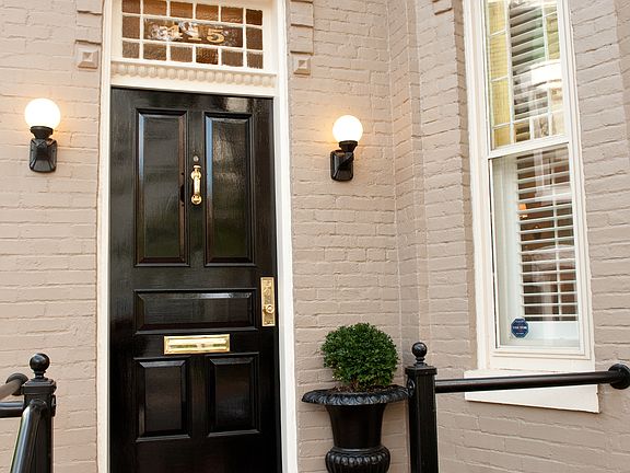Handsome, renovated close-in Senate side townhouse features 2BR, 1.5BA plus upstairs office. Kitchen and baths remodeled for today. Second floor laundry. High ceilings, wood-burning fireplace, pull-down attic storage and 1/3 basement storage. New roof circa 2018, new brick pointing, new historically approved UV rated storm windows. Front facade professionally lighted and fenced in yard professionally landscaped. Handsome gated brick courtyard with mature plantings out back plus one-car parking.