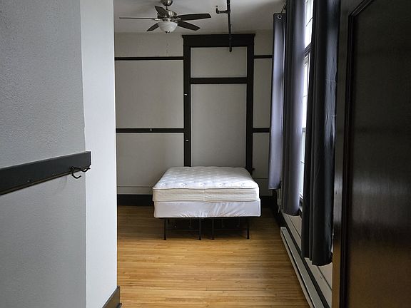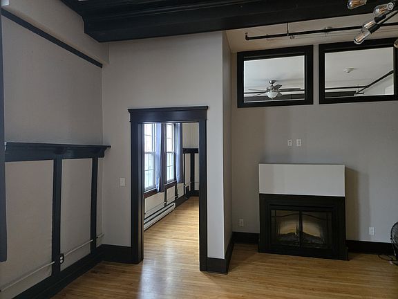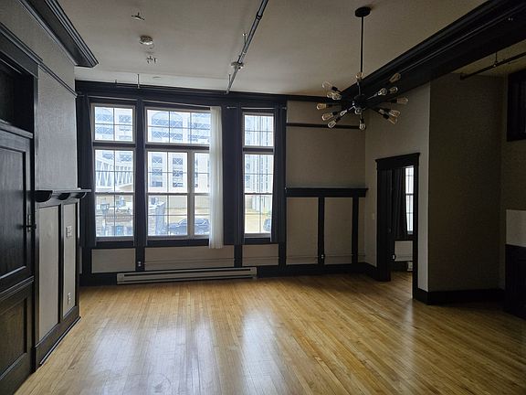 The apartment at 415 3rd St SE, Unit 201, Cedar Rapids, IA 52401, is a 2-bedroom, 2-bathroom unit in the historic Sokol building, spanning 1,450 sq ft. It features 14-foot-high ceilings, original hardwood floors, stainless steel appliances, and a gas stove. The apartment offers skywalk accessibility and secure entry. Located in the Oakhill Jackson neighborhood, it's close to downtown amenities like restaurants, bars, and the Paramount Theatre. Utilities are tenant-paid, and the rental criteria include no past evictions and at least six months of continuous employment. Pets are limited to two approved cats or small dogs, and renter's insurance is required. Tenant pays utilities, and pets are limited to one approved cats/small dogs. Renter's insurance is required.
