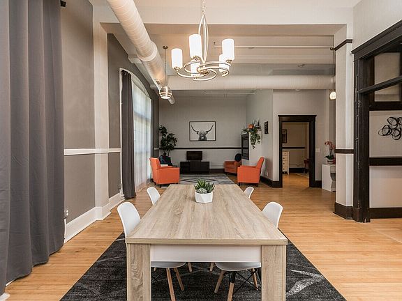 The apartment at 415 3rd St SE, Unit 301, Cedar Rapids, IA 52401, is a 2-bedroom, 2-bathroom unit in the historic Sokol building, spanning 1,400 sq ft. It features 14-foot-high ceilings, original hardwood floors, stainless steel appliances, and a gas stove. The apartment offers skywalk accessibility and secure entry. Located in the Oakhill Jackson neighborhood, it's close to downtown amenities like restaurants, bars, and the Paramount Theatre. Utilities are tenant-paid, and the rental criteria include no past evictions and at least six months of continuous employment. Pets are limited to two approved cats or small dogs, and renter's insurance is required. Tenant pays utilities, and pets are limited to one approved cats/small dogs. Renter's insurance is required. Tenant pays utilities, and pets are limited to two approved cats / small dogs. Renter's insurance is required.