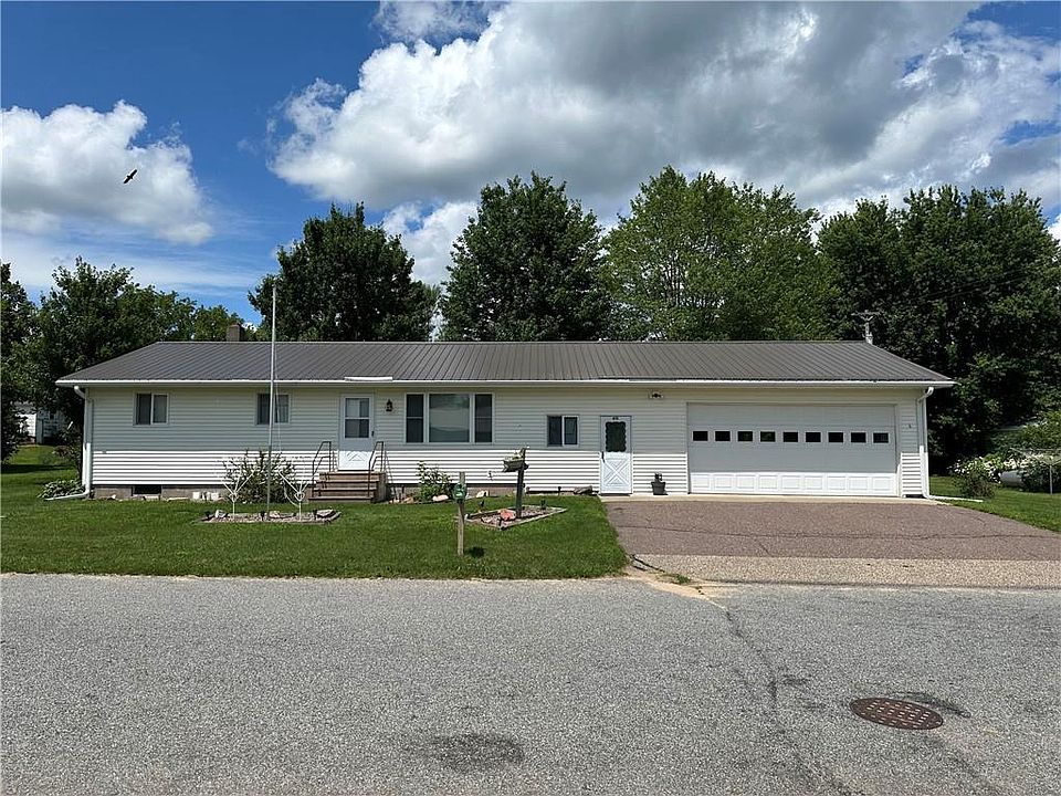 3 Bdrm 1 Bath Ranch home Vinyl sided, Steel Roof and Rain Gutters. Nice dining area, kitchen has plenty of cupboards. Bathroom has a low entry tub & high rise toilet. There are newer vinyl windows throughout. The attached garage has 10' ceilings and 8' garage door to accommodate taller vehicles. The basement is unfinished & there is a built in cold cellar for storing canned goods. House sits on a 1/2 acre nicely landscaped yard and there is plenty of room for a garden and to let your kids and animals play. Located with easy access to main roads.