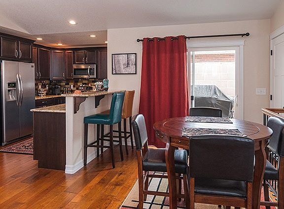 Exceptional Unit! Granite counters in kitchen with raised breakfast bar. Schroll cabinets, hardwood floors, gas fireplace in living room, patio with gas line and gate, fully finished backyard with sprinkler system and vinyl fence, A/C, all appliances including washer and dryer, custom blinds! SWEET!!!