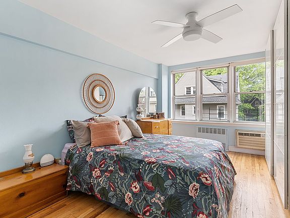 Step into the fully reglazed bathroom, exuding freshness and newness. The sizable bedroom boasts 3 large windows, a ceiling fan for a breezy touch, and ample storage with both a curtained closet and a large IKEA standalone unit. The entire unit has through-the-wall AC units to ensure comfort year-round, all atop original hardwood floors.