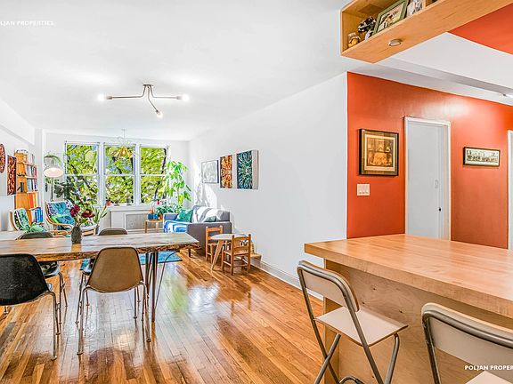 Bright and spacious, impeccably designed, 2 bed, 1 bath co-op. Unit 4J has a one-of-a-kind open kitchen, with built-in kitchen island for extra dining and storage - perfect for engaging guests while cooking and entertaining. Also comes with gorgeous custom-designed tile flooring and stainless-steel appliances, including gas range and dishwasher. The entire unit is awash in natural light from its western exposure. A huge primary bedroom can easily accommodate a king-sized bed and offers plenty of closet space. The generously sized second bedroom can be converted to a home office. Renovated bathroom with double wide vanity and two sinks. Hardwood oak flooring throughout. Through-the-wall air-conditioning. 415 Argyle is arguably one of the best buildings in Ditmas Park, known for its modest maintenance fees given the location, recently renovated interiors and level of service. Mint, mid-century building impeccably maintained and cared for by the staff and lovingly looked after by its residents. Live-in Super, Porter, recently renovated Laundry Room, Backyard Garden, Voice & Video Intercom and Fios available. Parking and bike storage available (waitlist for both). Subletting allowed for 2 out of 5 years, with board approval. Located on gorgeous, tree-lined Argyle Road, just off of Cortelyou. Cats welcome (sorry, no dogs). Building allows 90% financing. A plethora of incredible independent restaurants, cafes and bars, the Farmer's Market, Flatbush Food Co-op and other conveniences nearby. Two blocks to the Q train and 4 blocks to the B express train. Prospect Park, Downtown Brooklyn, Manhattan and Coney Island all easily accessible! Contact us for a private showing today. Masks required for all showings. Social distancing will be followed.