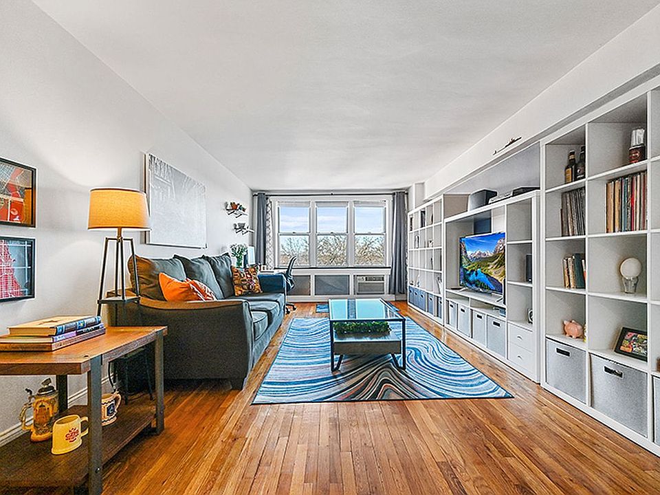 Spacious & Bright! Beautiful 1 bed, 1 bath co-op in the heart of Ditmas Park. Awash in sunlight, unit 7A is perched on the top floor, with eastern sky & tree top views. Expansive, flexible layout with plenty of space for living, dining, and working from home. Hardwood oak flooring throughout. Through-the-wall air-conditioning.