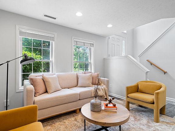 This stunning, updated townhome is perfectly situated just a few minutes walk to the heart of Carmel's City Center, The Palladium, Restaurants and The Monon Trail! This 3 Story home offers a beautiful entrance with 2 living areas, a gorgeous updated kitchen with a brand new Kitchen Sink, Faucet, reverse osmosis system, and new Quartz Countertops. The eat in kitchen also offers a gas fireplace and a lovely balcony perfect for your morning coffee. The lower floor offers the entrance to your 2 car garage, a laundry room and a great space perfect for a workout area, home office, or media room. In the upper level, you'll find brand new carpet throughout, a full guest bath, and 3 bedrooms. The primary suite offers vaulted ceilings 2 walk in closets and a lovely primary en-suite. If you're looking for low maintenance living and want to be in the heart of all that Carmel has to offer, then you have certainly found that with this home!