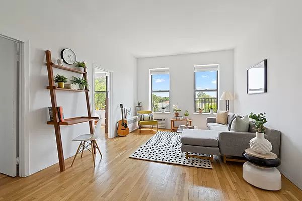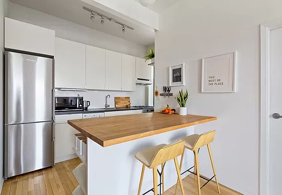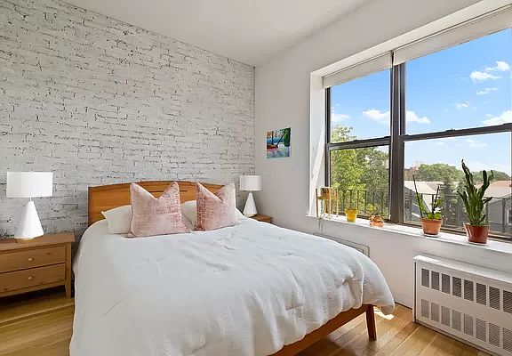 This urban oasis is exactly what you have been searching for. Sun-drenched with ceilings just under 10-feet, exposed brick and beautiful hardwood floors throughout. This beautifully renovated TOP floor 2 bed, 1 bath is a rare gem and set in a meticulously maintained, pre-war elevator building. Enter into the foyer with ample storage which opens to an expansive living room with space for dining, two large south-facing windows and a stylishly remodeled open kitchen featuring a butcher block breakfast counter with seating. The windowed kitchen features a dishwasher, tasteful white cabinets, and a sleek subway tiled backsplash. There are two generously-proportioned bedrooms, each with ample closet space along with and tiled windowed bath with a linen closet. Beautifully refinished hardwood floors flow through the entire apartment. Ideally located on the border of Kensington and Windsor Terrace, just blocks from Prospect Park, the F/G at Church Avenue, and plenty of shopping, dining, and services and within walking distance to the restaurants and shops along Cortelyou Road. The building is pet-friendly and features a common laundry room, an onsite super and porter, and bike storage. Maintenance includes heat, hot water and cooking gas.