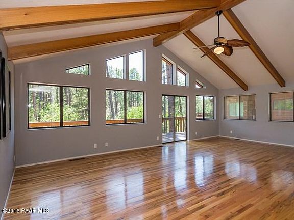 Upscale rustic 4 bedroom, 3 bath home for sale in the pines of Haisley Homestead five minutes from historic downtown Prescott, AZ. Main level has great room with wall of windows, fireplace & vaulted beamed ceiling, huge deck overlooking forest & seasonal creek, master suite, guest bedroom, new hardwood floors, fresh paint; updated kitchen has island, built-in gas BBQ, see-through fireplace, full fridge & full freezer. Lower level makes a perfect teen or in-law suite with 2 bedrooms, full bath, soundproof game room with wet bar & fridge, office, laundry/craft room & deck leading to fenced yard for kids & pets. Storage galore. Community pool & tennis plus easy access to National Forest hiking and biking. Close to Yavapai Regional Medical Center, Yavapai College, VA campus, schools, shopping.