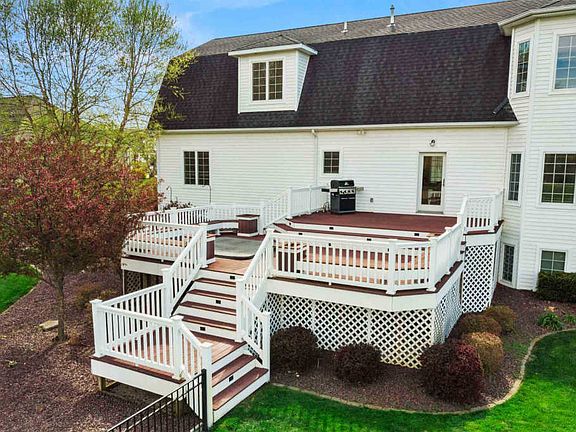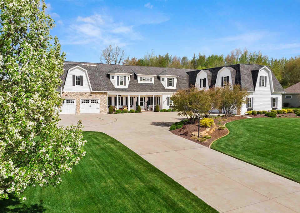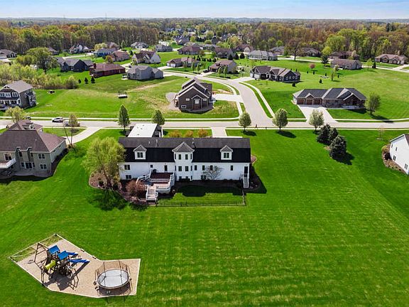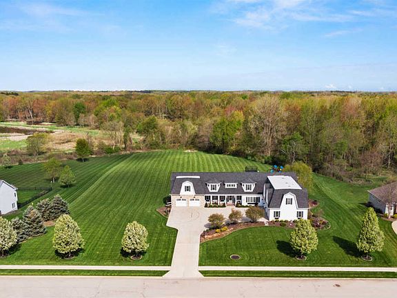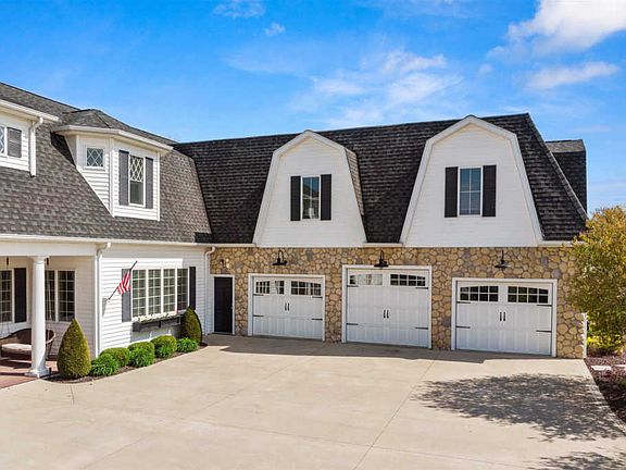 Absolutely gorgeous custom home in premier Barrington Hills neighborhood N of Warsaw! Ideally located on 2 lots (3.8 acres) stunning 6 bed/4.5 bath Granite Ridge built home is beautifully made w/ close attention to detail & quality from outside in. Well-maintained, manicured lawn w/ sprinkler/irrigation (includes Rid OâRust) system & professional landscaping complement large courtyard driveway tucked into L shaped layout w/ divided 5 car garages & basketball hoop. Classic exterior w/ modernized mansard roof & upgraded timberline shingles look sharp against white, black & stone accents. Lofty 9â ceilings on all 3 floors for light breezy atmosphere & welcoming covered front porch complete w/ swing. Inside is bright & clean w/ lots of unique touches giving WOW effect. Vaulted foyer, large bedrooms, 1 office, 2 gas fireplaces in great room & massive finished basement keep things cozy w/ plumbing for full service bar. Open plan eat-in kitchen w/ quartz & butcher block countertops, 2 dining areas, lovely wood floors, nook & beverage station starring 10âx4â island separating hearth room. 1 bathroom has jack & jill, another w/ stylish black & white tile & beveled glass window above jacuzzi tub in master; separate laundry facilities w/cubbies in mudroom. Premium features include Cottage Watchman security, heated garages w/ sinks & drains, 2 furnaces for zoned heat & AC, & septic for 5 beds. Private stair access to potential apt above 2 car garageâready to be finished to your liking. Sprawling, private back yard lined w/ trees is perfect spot for all kinds of activities including bonfires w/ designated area for swingset/trampoline & fenced in section for pets. Relax on vast multi-tiered deck w/ built-in seating or enjoy stroll through walkable neighborhood w/ community pool across street. Part of popular Madison School District, shopping, movie theater & restaurants are minutes away & conveniently close to St Rd 15 & Airport. One of a kind!