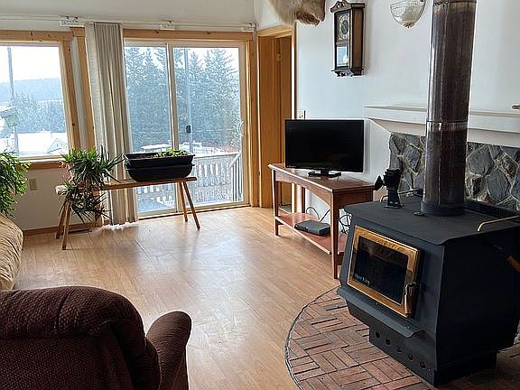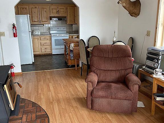 Single family home finished in 2003 by the owner. Updated interior with rustic exterior built on a solid foundation. This home has two bedrooms and two, full bathrooms upstairs. One bedroom and one full, bathroom downstairs. Downstairs has a mini-kitchen and can be used as a guest accommodation with private entrance. Large kitchen upstairs with new dishwasher and stove, also new cabinets. Two large, living rooms, one upstairs and one downstairs. Also includes a heated, attached, one-car garage and shop currently being used as a reloading area. Ample parking for large vehicles and such. Home is connected to city water, sewer and garbage services. Motivated seller.