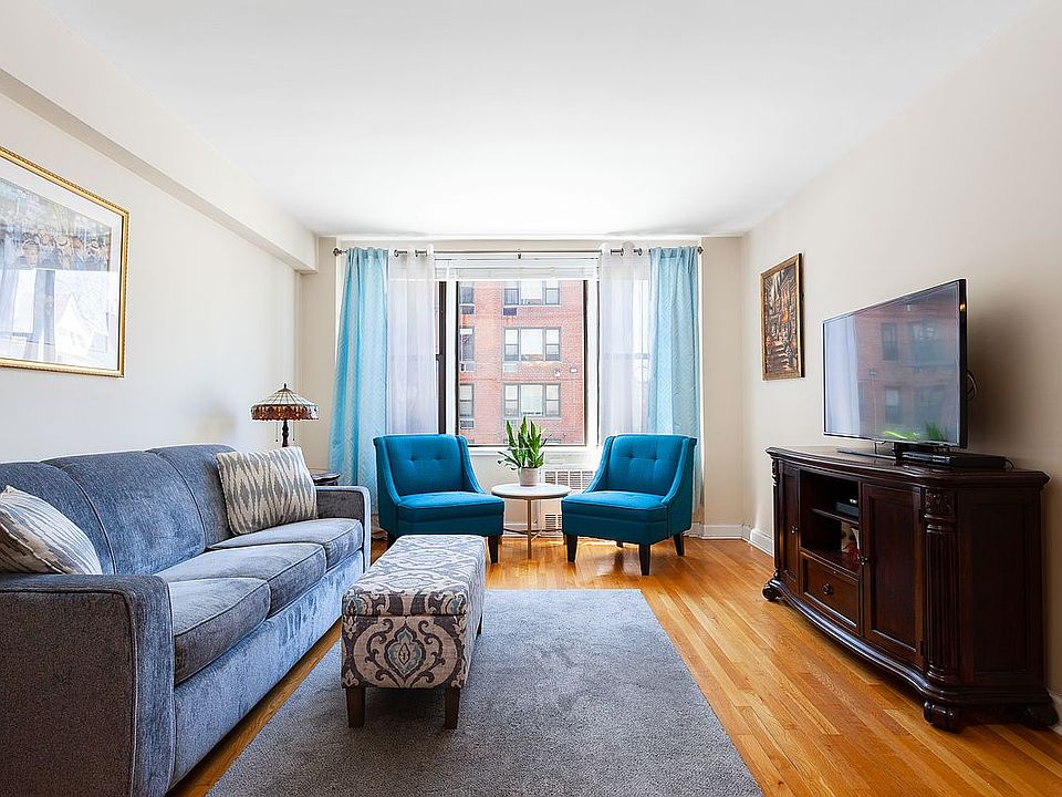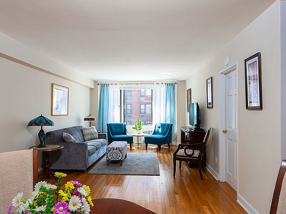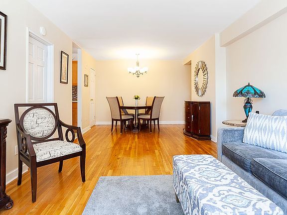 The large primary bedroom is separated from the 2nd bedroom and the main living area, giving it a tranquil feel. It has room enough for a king-size bed and so much more. The second bedroom is located on the other side of the apartment and has 2 exposures and a closet. The entire apartment has the original hardwood flooring in excellent condition and not an inch of the large windows is wasted as there are through-wall AC units in each room. Beverly Towers is perfectly located on a quiet tree-lined residential block, but just a block from the nearest commercial strip with abundant shops and services. The Ocean Pkwy bike path is also just a block away that can take you straight from nearby Prospect Park straight to the Coney Island shore. The building is one of the very few in the area with a 24hr doorman and attentive building staff including a live-in super. Located in District 15, the building has an updated lobby, 2 laundry rooms, bike storage, additional storage for rent, and indoor parking that does have a waitlist. The nearest train is 2 short blocks to the F & G Church Ave stop and there are many express bus options and the Q train is just a short jaunt away. The building is cat-friendly only, sorry no dogs.