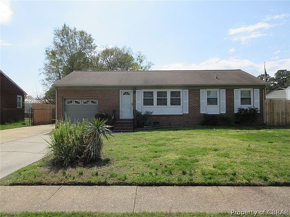 Welcome Home! Turn Key 3 bedrooms, 2 full baths, mostly brick rancher with 1 car attached garage, heated and cooled garage (Note not counted in sf), plus detached 1 car 2 story garage, plus inground pool - jump right in! Plus new carpet, paint, clean, replacement windows! Fenced-in backyard, covered and open patio space, close to shipyard, military bases, I-64 and more!