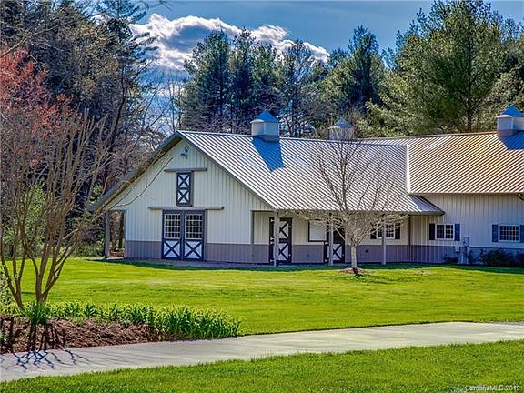 Pebbledash Farm is situated on 10+ level acres in the highly sought-out Cane Creek Valley just 20 minutes from downtown Asheville, NC. This elegant private estate offers the ideal setting for event center, vacation rental, horse farm or wedding venue. French Country residence features geothermal heat, granite and marble countertops, box beam and tray ceilings, spacious bedrooms, dining room, family room and sophisticated finishes. The grounds offer 3 gated entrances, private pond with waterfall, bold creek and custom bridge, immaculate landscaping, Morton barn, shop, and separate 2-BR apartment; the Equestrian enthusiast will find two fenced pastures, run-in shed, 4 stalls, wash area, center aisle, automatic water filler in stalls, tack room and hayloft all in a wing of the spacious Morton building. Attached garage provides 3 bays and the 5,000 sq. ft Morton building is multi-purpose; shop, barn, apartment, car or equipment storage. Priced below recent Appraisal. Seller's Motivated