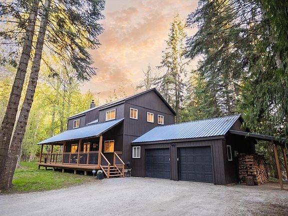 Introducing this impeccably updated farmhouse nestled on 10 wooded acres featuring 3 bedrooms and 2.5 baths. On the first floor you will find a vaulted ceiling entry, desirable spacious kitchen, quartz counters, farmhouse sink, and a sunroom. Finishes are matched throughout featuring LVP flooring, tile showers, and slow-close cabinetry. Primary bedroom complete with vaulted ceiling and en-suite bathroom with double sink vanity and walk-in shower. Cozy up by the new certified wood burning stove while enjoying peaceful forest views with abundant wildlife. Imagine hosting family and friends on the wrap around porch with plenty of room to add a hot tub. The finished basement with pool table offers family entertainment area or could be reimagined for canning storage or wine cellar. Attached 2 car garage is insulated and heated too! Enjoy plenty of space to add additional buildings, garden and your dream landscape. Located less than 20 minutes from downtown Sandpoint.