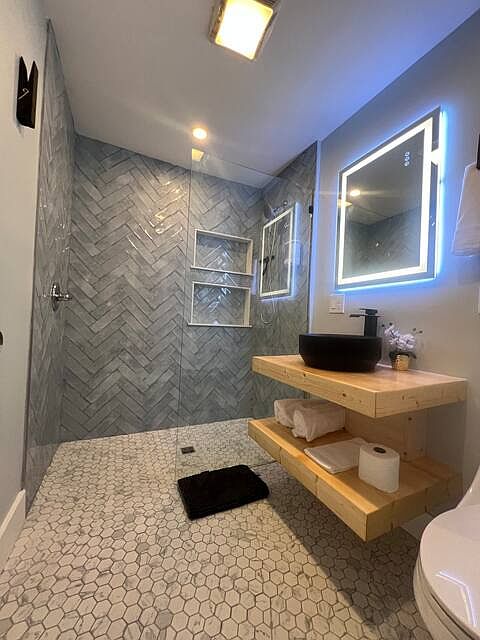 Just one row back from the beach, this beautifully updated 1-bedroom, 1-bath apartment is your perfect coastal getaway. Step inside and instantly feel at ease in a space designed for comfort and style. Highlights You'll Love: Bright, airy living space with large windows and plenty of natural light Freshly remodeled kitchen and bathroom with brand-new floors throughout Spacious bedroom featuring a plush king-size bed for dreamy nights Cozy sofa sleeper to accommodate extra guests Full mini-kitchen, stocked with all your cooking essentials Modern bathroom with a tiled walk-in shower, custom vanity, and chic finishes Outdoor Perks: Private deck perfect for morning coffee or evening cocktails Refreshing outdoor shower after a day on the sand Added Amenities (all included!): Electric, water, Wi-Fi, and even Netflix for cozy nights in. Unbeatable Location: Just a short stroll to the Carolina Beach Boardwalk, restaurants, shops, and live entertainment Only minutes from Wilmington, offering the perfect balance of beach town charm and city convenience Whether you're a local looking for a serene beachside spot or a visitor eager to soak up the best of Carolina Beach, Mermaid Crossing Suite 2 has everything you need to relax, recharge, and make unforgettable memories. Owner pays all utilities. Internet and Netflix are included.