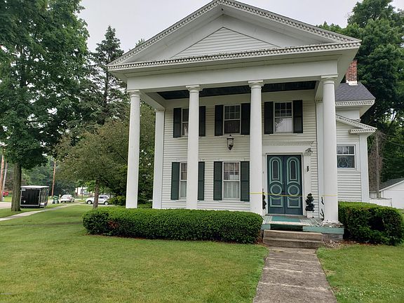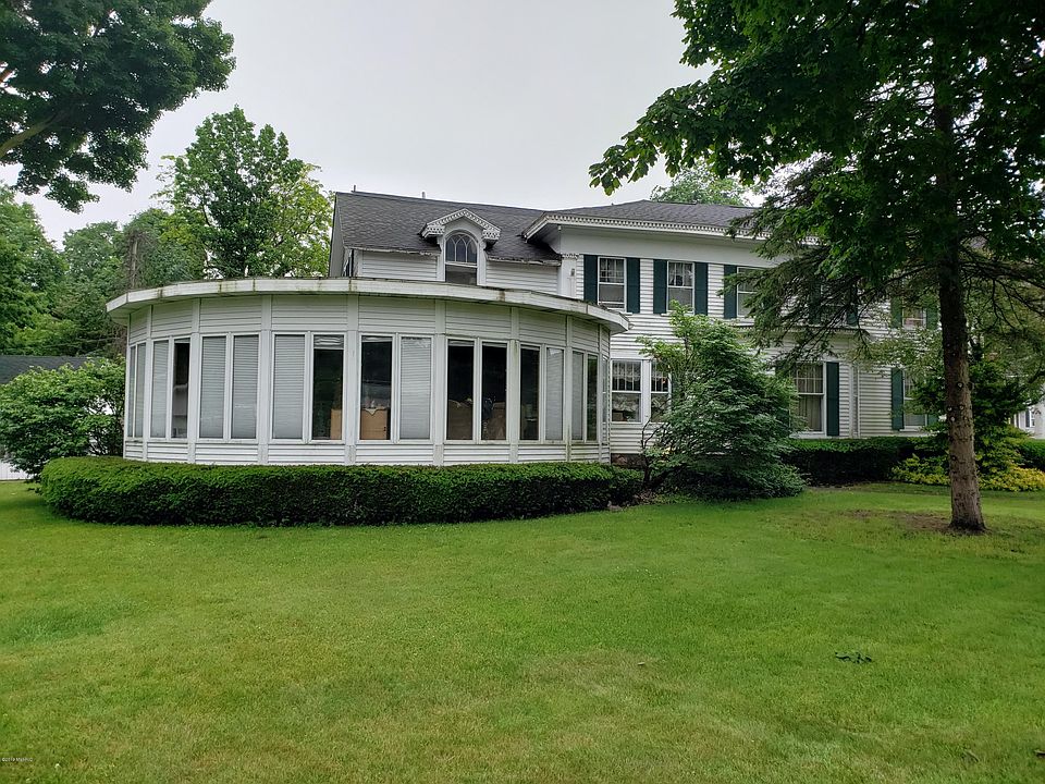 Historic Greek Revival Home in the Village of Constantine offers lots of possibilities. Good size kitchen w/oak cabinets, 2 pantry's & breakfast nook. The large Four Season Room has pella windows, french doors and lighted glass block inner wall. Original Oak Woodwork, open stairway with landing bench, formal dining room, 2 bathrooms & large living room with fireplace & hardwood floors. Upstairs and there are 4 -5 bedrooms and a full bath & 2nd-maid's quarter's stairway to the kitchen area. The basement offer's room for storage plus there is a 4 car detached garage, cement driveway and large corner lot.