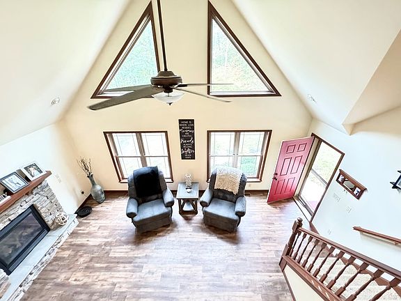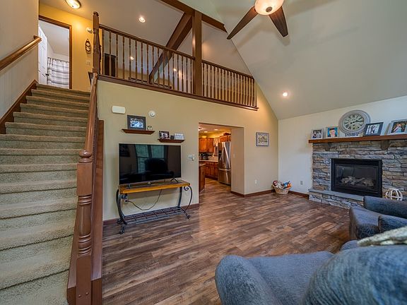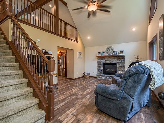 This beautiful contemporary home is the perfect blend of modern design and the beauty of nature. Nestled on 10+ acres this three bedroom , four bath home offers a lifestyle of comfort and privacy. From the exterior you will notice a meticulously landscaped yard, mature trees, two car , two story oversized garage, covered front porch and a deck/patio area perfect for entertaining. Step inside and find a gorgeous fireplace and plenty of natural light in the living room, the eat-in kitchen offers a high end cabinets, walk-in pantry, granite countertops and new appliances. The owners suite is stunning and here you will find a soaking tub and shower, a laundry/half bath finish off this floor. Upstairs are two large bedrooms, a full bath and an open loft perfect for an office. The walk out basement is a full family room with pellet stove and half bath. Tons of storage, central air, too many features to list....don't miss out on this house!