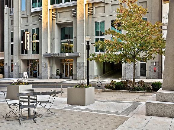 One of the larger 1 bdrm units*West facing*New flrs*Fresh paint*Tile bath w/granite counters*SS appls*Full size washer/dryer*Great office nook*One parking conveys*Great downtown living.