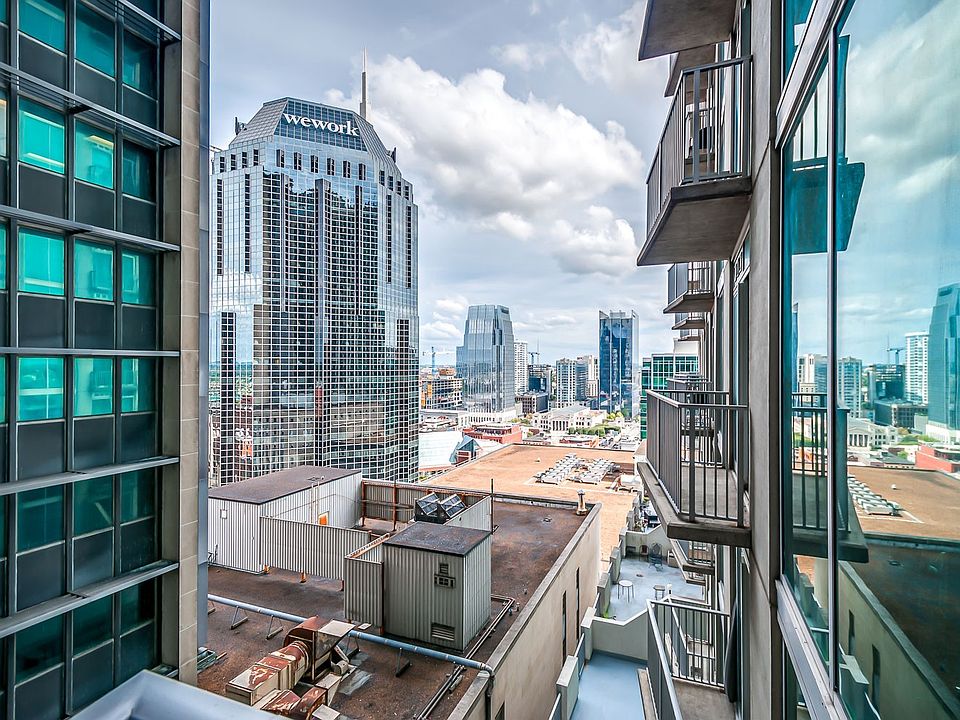Live in the heart of downtown with incredible amenities. Floor to ceiling windows, granite countertops, hardwood floors, freshly painted, new hot water heater and black out drapes. Rooftop terrace that includes pool and fitness center plus a clubroom with kitchen. 24/7 concierge. Grocery store located on ground level for your convenience! Parking space 937. Virtually staged.