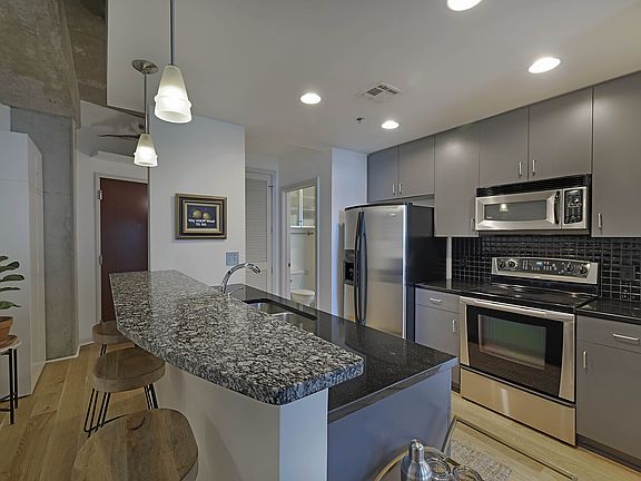 Enjoy the most of city life in this chic, urban oasis. Enter into the open-concept kitchen and living space with new floors throughout. The floor-to-ceiling windows in the living room flood the entire condo with refreshing natural light. Unwind in the bedroom while looking out your window at the city views. A cozy nook in the corner of the bedroom is perfect for creating a home office. You will love the Viridian amenities including a rooftop pool and patio! Make your next home sweet home in the heart of Music City.