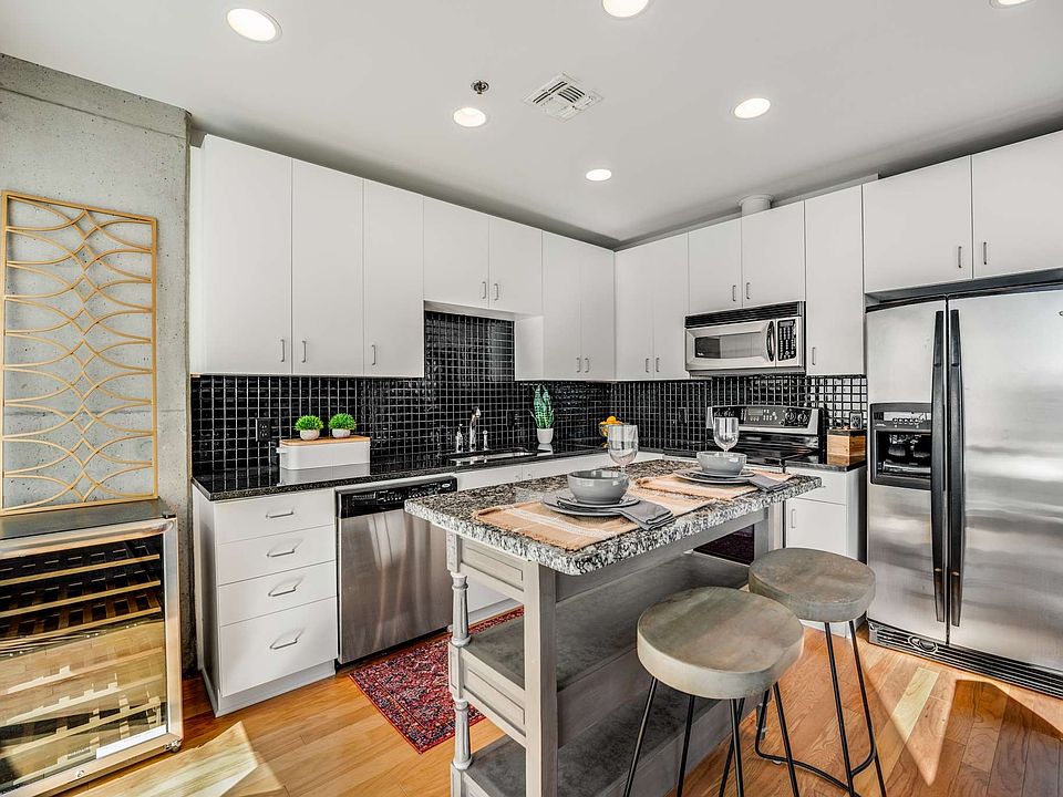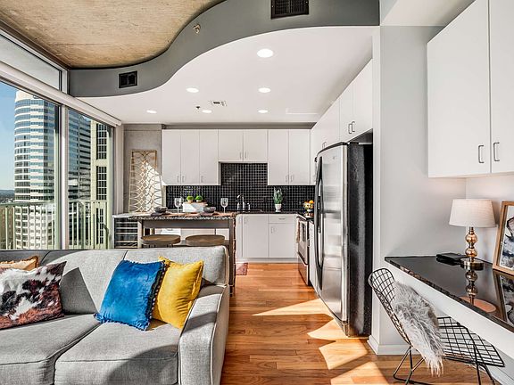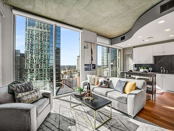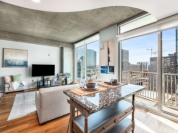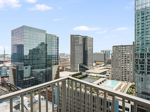 The breathtaking southwest views of the city are phenomenal! A wall of windows and balcony to overlook Nashville. Open floor plan, a dedicated bedroom with a door and a walk in closet, large kitchen with granite countertops and freshly painted cabinets with built in desk area, washer and dryer in hall hidden behind double doors, a tiled bathroom with granite counter tops and freshly painted cabinets. This condo is in fabulous condition!