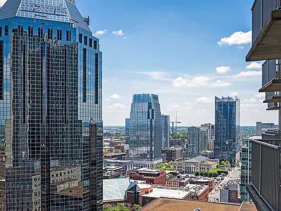 Ready for showings today. Beautiful southeast facing views from the bedroom of this cozy 1 bedroom unit. 24/7 concierge service, internet included, amazing rooftop amenities- pool, fitness center, and club room all bring amazing views daily and nightly. Only steps to the Arts District, Printer's Alley, Bridgestone Arena, etc.. 1 garage parking space & guest parking available in garage.