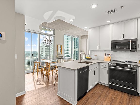 Welcome to the nicest 1 bd 1ba in The Viridian! This is a rare completely remodeled “02” corner unit. Remodel was completed in 2022. Upgrades include: GE Cafe appliances, reconfigured/remodeled kitchen, LVP flooring, custom shelving systems, heated bathroom flooring, Toto bidet toilet, fully remodeled bathroom! This home offers a perfect work from home opportunity with a private office space just off of the living room, with an unbeatable view of downtown. Please ask your agent for a list for more detailed remodeling notes. Design/selections were meticulously sourced by well known Atlanta designer! This beautiful sun filled unit has expansive views of West Nashville, and those gorgeous cotton candy sunsets. My clients especially love this location for its walkability to TPAC, Schermerhorn, and The Ryman! Google fiber included in HOA fee. STR/Airbnb not permitted. Long term renting is allowed (1 yr min), there is a waitlist through the HOA for a rental permit. Refrigerator, W/D remain.