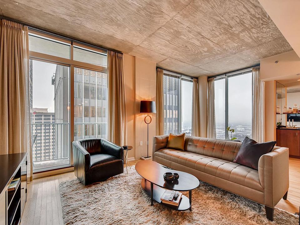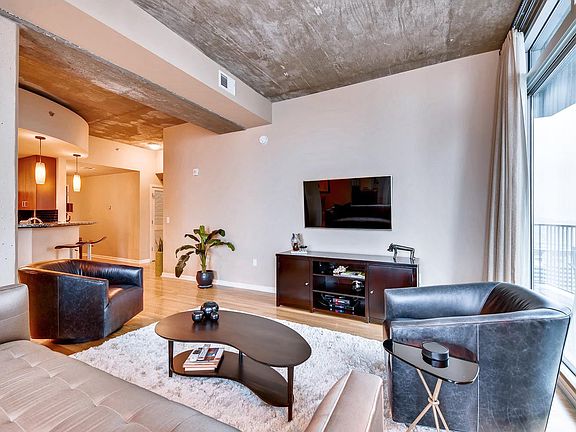 WOW! Modern 2 bedroom condo with 180 degree views- Nissan Stadium, Cumberland River, midtown - you can see it all! Upgrades throughout including wet bar, double patio, linen closet and 2 parking spaces. Huge master suite with custom closets. 24 hr concierge plus grocery store on the first floor. Experience downtown living at it's best!