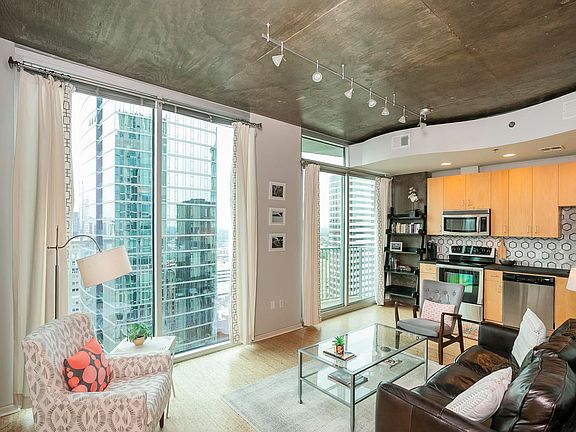 Fully furnished, turnkey condo in the heart of downtown Nashville! YES, this one is completely furnished. This unit has new bamboo floors, new kitchen countertops and a beautiful backsplash design. In addition, the custom closet provides an abundant amount of storage. The Viridian boasts the only true rooftop pool on the 31st floor, overlooking downtown and the Nissan Stadium. The clubroom and fitness center are located on the 31st floor as well. Additional amenities include 24/7 Concierge service and Google Fiber. The location offers direct access to Broadway, Bridgestone Arena, Ryman, Printer’s Alley, Nissan Stadium, 5th and Broad, newly renovated Arcade, and Nashville Yards, housing the Pinnacle music venue, many new restaurants/bars, bowling alley, and movie theater. Unit conveys with 1 deeded parking spot. This unit has been smoke free and pet free. Just bring your clothes and you are ready to enjoy all urban living has to offer!