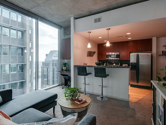 Twenty-Seventh Floor! River view, City view, Sunrise to your right, Sunset shades to your left. All appliances remain including new washer/dryer. H20 heater 2019. Remote-controlled shades. Balcony. Flexible closing/possession. The Viridian is close to it all, no ride-share required. Secure parking, entry, & elevators. Best 24-hr concierge team in BNA, with fur baby treats waiting. One assigned / deeded parking spot on P9. Urban Market grocery next door. Nashville's first & best rooftop pool. 31st floor city-view gym & owner's lounge. No short-term rentals. Long-term rentals with (waitlisted) permit. Flooring credit, with acceptable offer.
