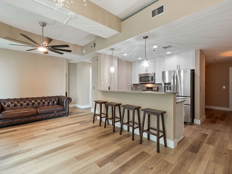 NEWLY REMODELED! Large, Convenient Parking Spot near the elevator! Five stack floor plan (These do not come available often)! Private Balcony! This immaculate unit features a foyer, new trim moulding, new LVP flooring, new paint and new lighting throughout, private bedroom/bath, large living room, dining room, washer/dryer, kitchen with double ovens, new dishwasher, and huge breakfast bar. Incredible downtown Nashville views in both directions. The Viridian offers an owners lounge, rooftop pool, gym, club room, guest parking & 24-hour concierge service.