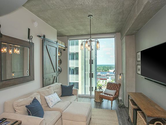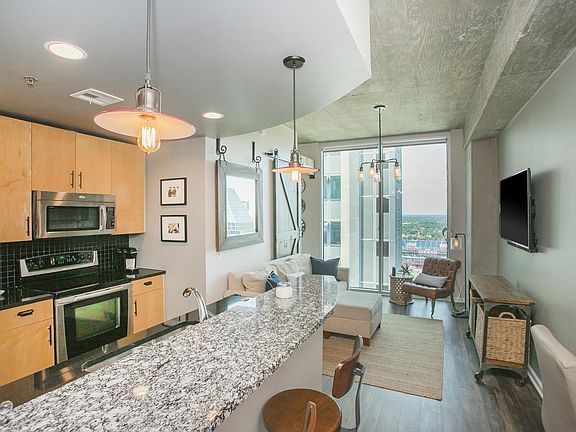 Price improvement! Bring your clothes & move in!! This updated condo will convey FULLY furnished. Downtown living at its BEST on the 28th floor of the Viridian with direct view of the river & Nissan Stadium and the best seat for fireworks from your balcony. Walking distance to Bridgestone, Nissan Stadium, Broadway, Printer’s Alley & Fifth and Broad, the Viridian is the perfect location for working & playing downtown. This condo is a rare, true one bedroom, with a modern barn door installation for the bedroom. It has new paint and floors throughout, as well as new blinds on the floor to ceiling glass windows. The bathroom has a new vanity and kitchen has a new dishwasher. One deeded parking space (338) conveys. Amenities include Nashville’s only true rooftop pool, located on the 31st floor overlooking Nissan Stadium and Broadway. Fitness center & Club Room are also on the 31st floor. Concierge service 24/7. Come enjoy music, sports, & dining walking distance in downtown Nashville!