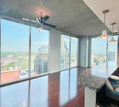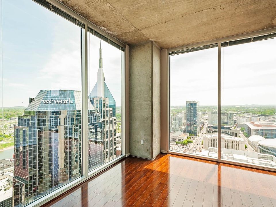 Beautiful, corner unit with breathtaking views! 2 BD ; 2 BA, 24 hour concierge, 2 assigned parking spaces in gated private garage, gym, and heated rooftop pool. If you are looking for a great condo downtown this is it! Your new home is a stone's throw from Broadway, Printer's Alley, 5th+Broadway and everything Nashville has to offer! Tenant/tenants agent to verify all pertinent information. $500 move in/move out fee required by tenant.
