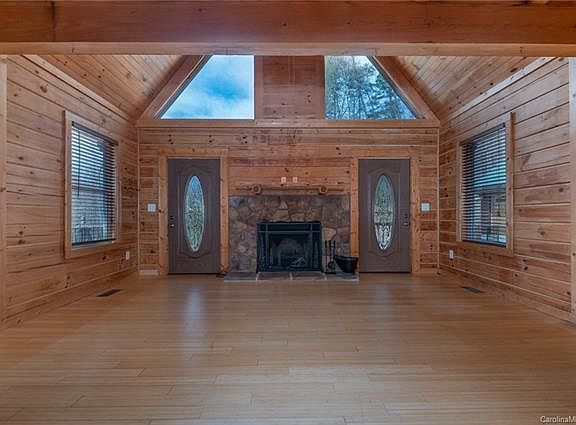 Super cozy 3 bedroom 2-1/2 bath log cabin in the gated community of Clearwater Creek just outside of Rutherfordton. This home offers main level living with the master, kitchen/dining room, & laundry all on the ground floor. There are many little upgrades that add to the appeal of this home - granite countertops, tall height vanities, wood ceilings, and a true wood burning fireplace. Spend your summer evenings watching wildlife from the screened porch or toasting marshmellows beside the firepit. With nearly 1-3/4 acres, the property gives you a little elbow room without being so large that it's hard to maintain. The double car garage has open storage above and it's own panel box. The setting is peaceful and serene w/low annual dues and a nice community playground area. There is also a RV plug in for you or your traveling guests.