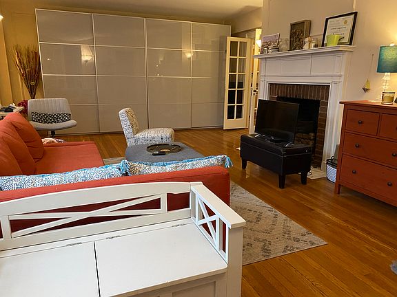 Warm and spacious second floor condo unit in historical York Lynne Manor building. Enter into a living room featuring a beautiful fireplace, large windows and crown molding. The living room leads to a sun filled study with and a gorgeous bay window. As you keep walking, you'll enter a large formal dining room. Off the dining room, galley kitchen with stainless steel appliances. The master bedroom is very private, at a very end of a hallway on the other side of the unit. Tons of closet space, including an oversized sliding door wardrobe, in-unit laundry, and no limit on parking spaces. The condo building houses only 30 units and feels very private. The property includes a relaxing courtyard with a koi pond, herb garden and back yard patio/picnic space.