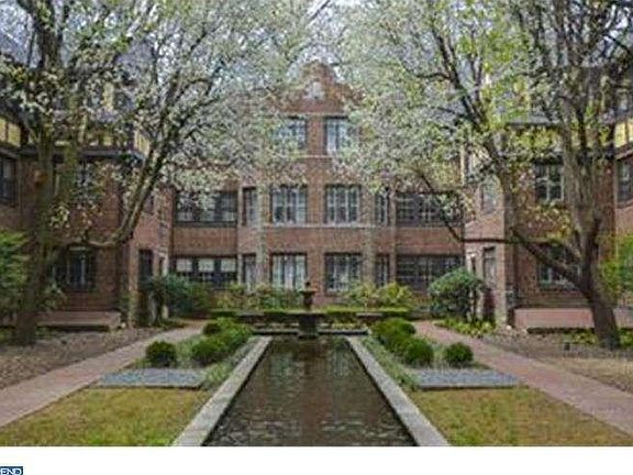 The elegance of age - customized, one-of-a-kind 1st floor unit with its own private outside entrance in stately Yorklynne Manor. Entry Hall leads to gracious Living Room with gas fireplace, high hat lighting and plantation shutters. French doors open to Family Room (previously a bedroom) with parquet floor, elegant wall-to-wall built-in bookcases. Entertainment sized Dining Room has deep tile window sills, spacious shelved closet for your china and glassware. L-shaped eat-in Kitchen with Breakfast Area, electric cooking, tile backsplash, has outside entrance to shared metal deck which opens to back staircase and refuse area. Breakfast Area opens to its own private deck which leads to landscaped grounds and parking lot. Huge Master Bedroom is large enough to accommodate your large pieces of furniture, full master bath, master bedroom is augmented by a private dressing room with 4 large lighted closets, 1 walk-in closet and 2 built-in bureaus and desktop work area. (This room could also be used as a study or office.) Seller says condo includes rare deeded 1 car underground garage space. Lower level storage bin (#30) for your convenience. Part-time, on-site superintendent. Community Room available. Merion Station's Yorklynne Manor- Tudor-style, luxury condominiums, was built-in the 1920's and features a magnificent, gated courtyard with reflecting pool and flowering gardens. Convenient to train station, SJU, shops, award winning Lower Merion schools, houses of worship.