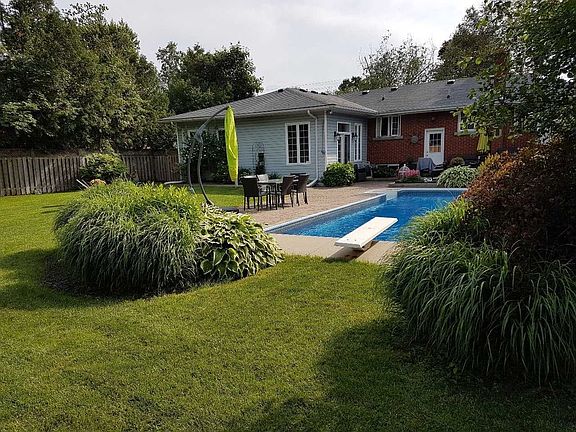 Stunning, Fully Updated, 3 + 1 Bedroom Brick Bungalow In The Heart Of Whitby. This Home Boasts A Spacious Backyard Oasis With Inground Pool, Interlock, And Mature Gardens. The Interior Is Tastefully Updated With Newer Kitchen Cabinets, Quartz Countertops, Hardwood Floors, Pot Lights, Crown Moulding, And Gas Fireplace In The Spacious Living Room. The Basement Is Equally Stunning, With Pot Lights, Broadloom, And Ample Storage.