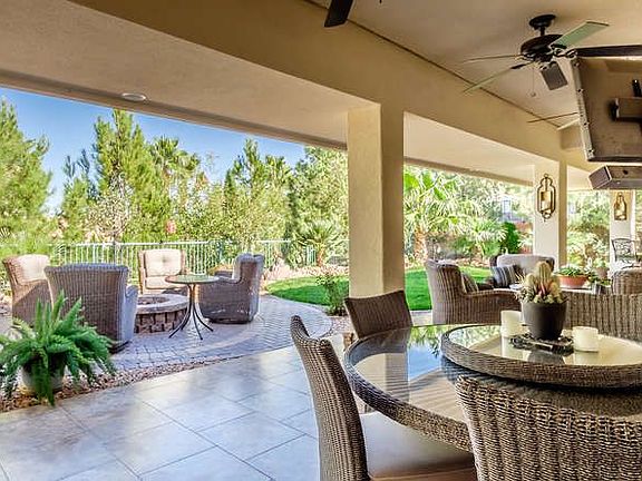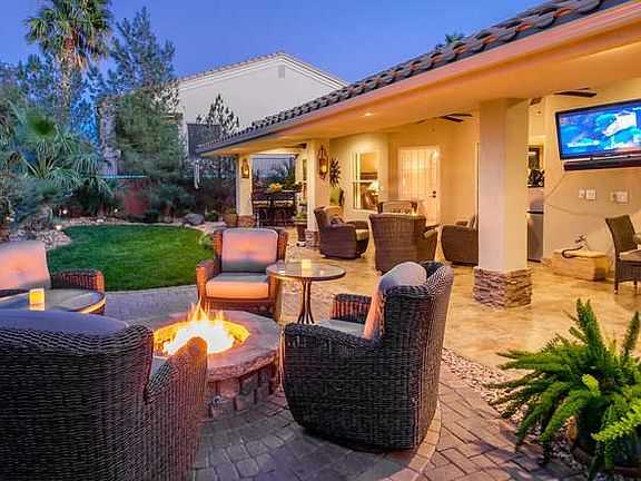 See this astonishing oasis in the desert outdoor living space for yourself, and make it your own awe-inspiring refuge. Mondell pines border the backyard providing year round lushness and privacy. The extended overhang patio covers the full length of the house. You'll be ready for outdoor living throughout all seasons with ample outdoor ceiling fans for Mesquite's blazing hot Summer heat, as well as a propane fire pit for those cooler desert evening temps. This 2057 sq. ft. 2 split bedrooms, 2 bathrooms and office, comes with an open concept living area and a 3-car garage. Homeowners in Mesquite Vistas, the Master Association, are also members of the Country Club at the Mesquite Vistas with privileges to the clubhouse, exercise facility, association swimming pool, and tennis and pickle ball courts. Golf at reduced rates.