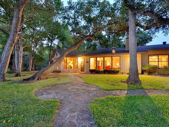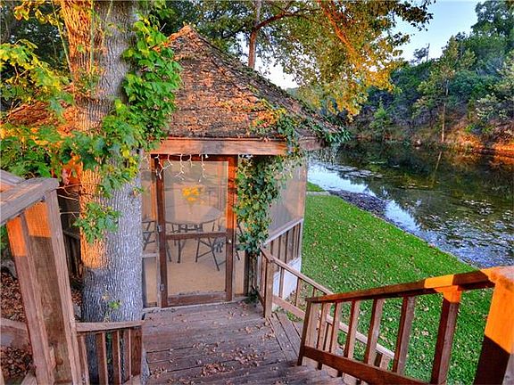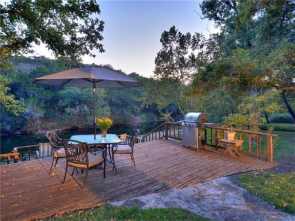 Elegant waterfront estate. 229' of lone man creek, sitting on 3 beautiful park like acres with towering trees. Original cabin built in the 1940's, major renovation in 1995 & an add on in 2001. This lovely home boasts 4 bedrooms & 4 full baths with a view of the water from almost every room. Galley kitchen, breakfast garden room feels like eating in paradise. Split floor plan has 3 bedrooms & sitting area on one side of the home. Master with sitting area, his & her baths on the other side. Spacious living room with floor to ceiling windows that overlook the amazing grounds and waterfront. Cabin room/ gameroom with original fireplace, private office. If you are looking for a hill country waterfront this is it! You can entertain so many people on this property. The possibilities are endless!