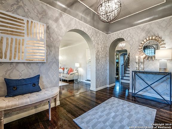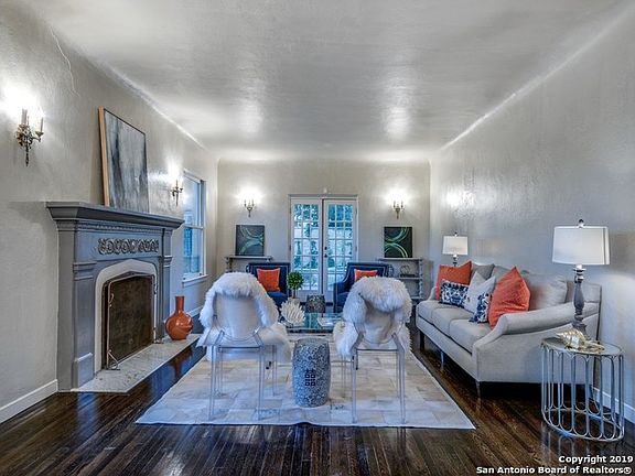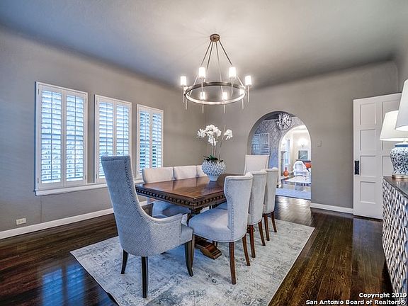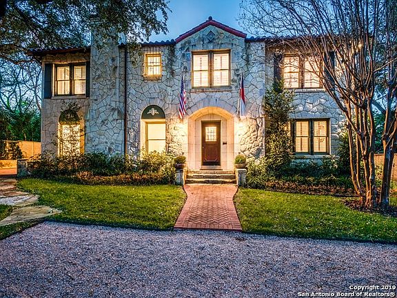 Classic Olmos Park Estate w/ modern updates. Large bedrooms, all upstairs, remodeled master bath/walk-in closet. Charming office off master. Formal living, large dining room & a beautiful family room w/ original tile. Eat-in kitchen w/ gas stove, ice maker, subzero fridge, & island. Large lot w/ gated entrance, lots of parking, cabana room w/ full bathroom & 2nd laundry, custom tree house . Large garage w/ lots of storage. House has a basement for extra storage. Close to airport & downtown!