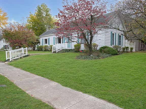 Charming 3BR/1.5BA home is nestled on a corner lot on a quiet street and exudes curb appeal! Living room has a decorative fireplace and large picture window overlooking the yard with mature pecan trees, Japanese Cherry, Weeping Cherry, Crab Apple and Magnolia trees. Home has a spacious kitchen, kitchen cabinetry has pull out drawers for easy access, all kitchen appliances included, informal family room, built-ins, ample storage and an enclosed screen porch that leads to a charming, trellis covered patio, walkway and nicely sized storage shed. Home has a quaint, cottage feel and is one of the oldest homes in Knightstown. It is steeped in history and served as a school from 1835-1853. Don't miss out on this special opportunity! Extremely low property taxes! Possession at Closing.